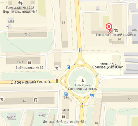 автобус № т55, ехать до остановки "Площадь Соловецких юнг", от остановки пройти 220 метров.