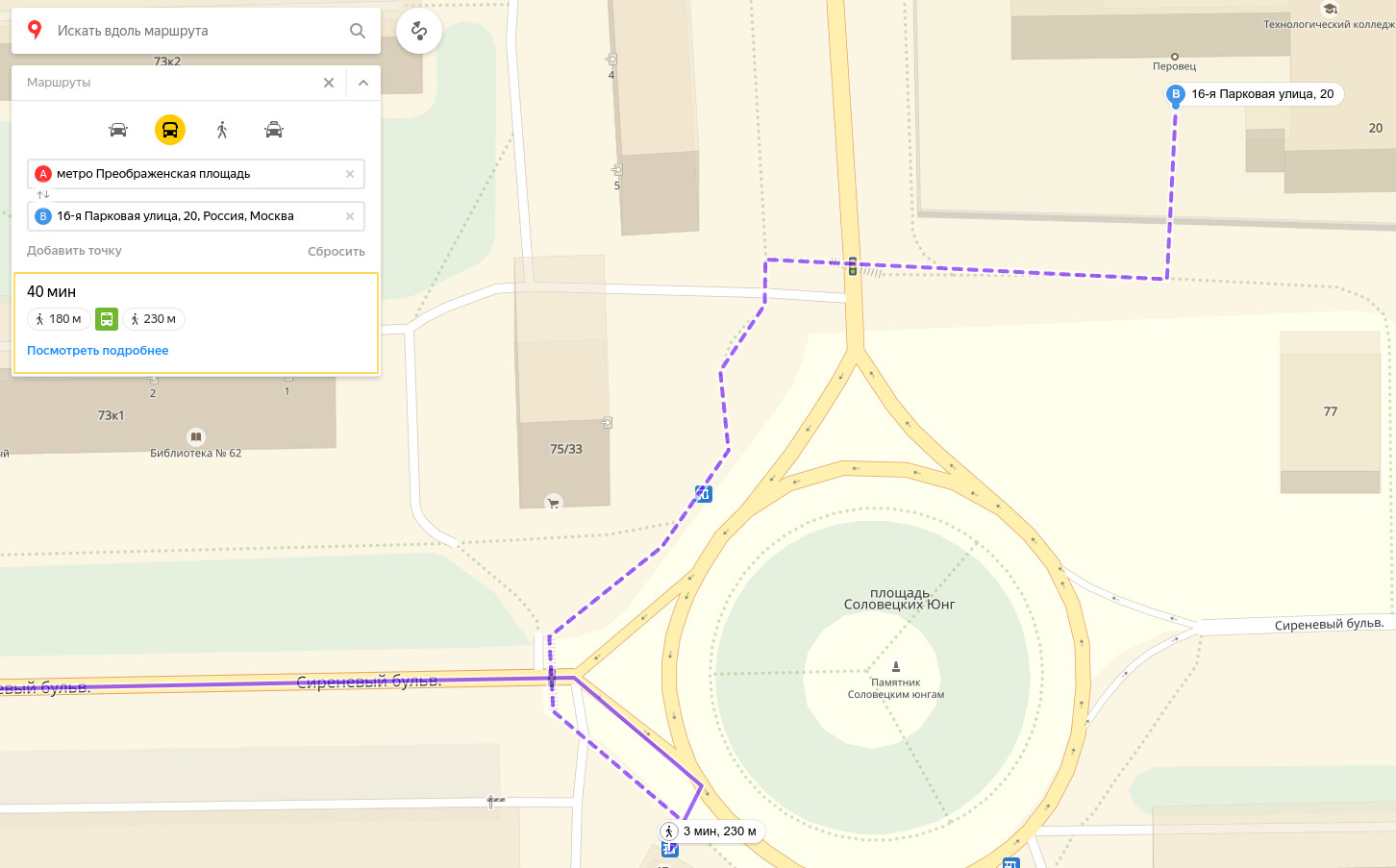автобус 230 (это его конечная и там же посадка), ехать до конечной остановки "Площадь соловецких юнг". От остановки пройти 220 метров.