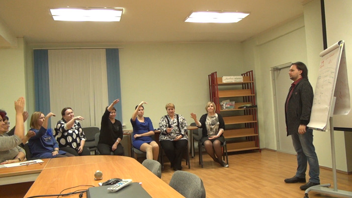 В рамках курса повышения квалификации для преподавателей Технологического колледжа № 24 проведён уникальный мастер-класс Председателя учёного совета ЦНИИ русского жестового языка, переводчика русского жестового языка и профессионального практикующего психолога Вячеслава Вячеславовича Кузьмина «Жестовый язык за один день».
