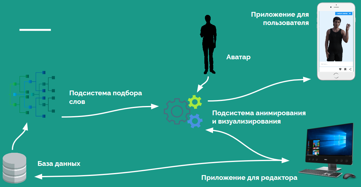 Комбинирование этих составляющих процедурным путём и удобный пользовательский интерфейс дают возможность работать с системой лингвистам и переводчикам, не имеющим опыта в 3D анимировании.