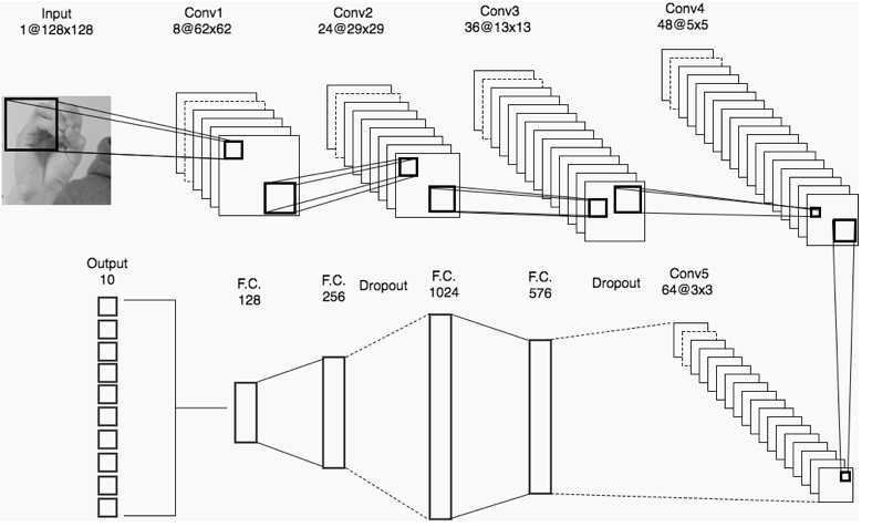 Рис 3. Архитектура сверточной нейронной сети для классификации дактилем РЖЯ.